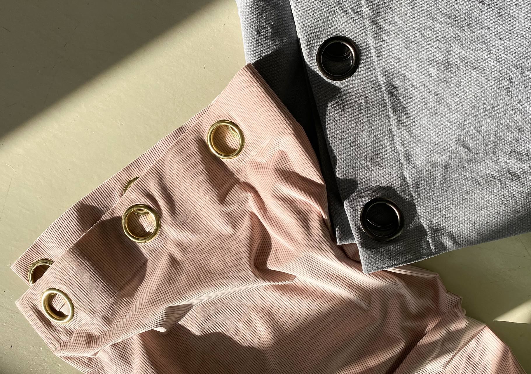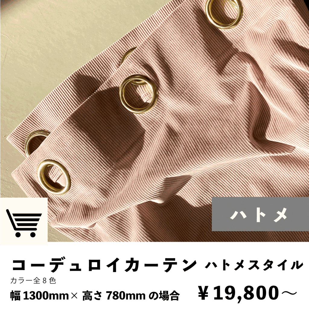 プラスチックのフックではなく輪っかの金属をポールに通して使います。(ハトメ内径40ミリ)カジュアルでラフな印象のハトメスタイルはコーデュロイ生地との相性も抜群です。フィッティングルームやお部屋の間仕切りなどにも向いています。