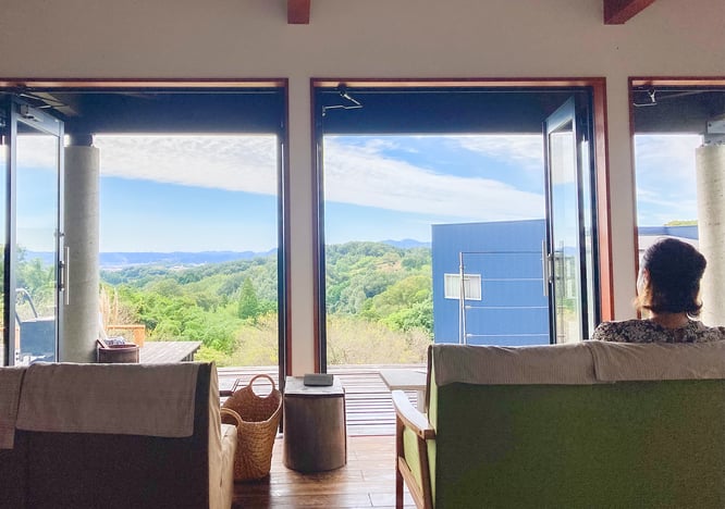 ソファでリラックスしつつ、店内に連なる大きな掃き出し窓から眺望できる景色は、本当に贅沢そのもの。