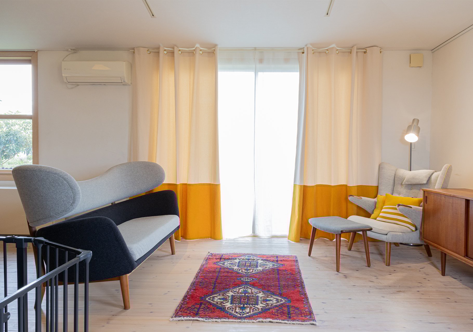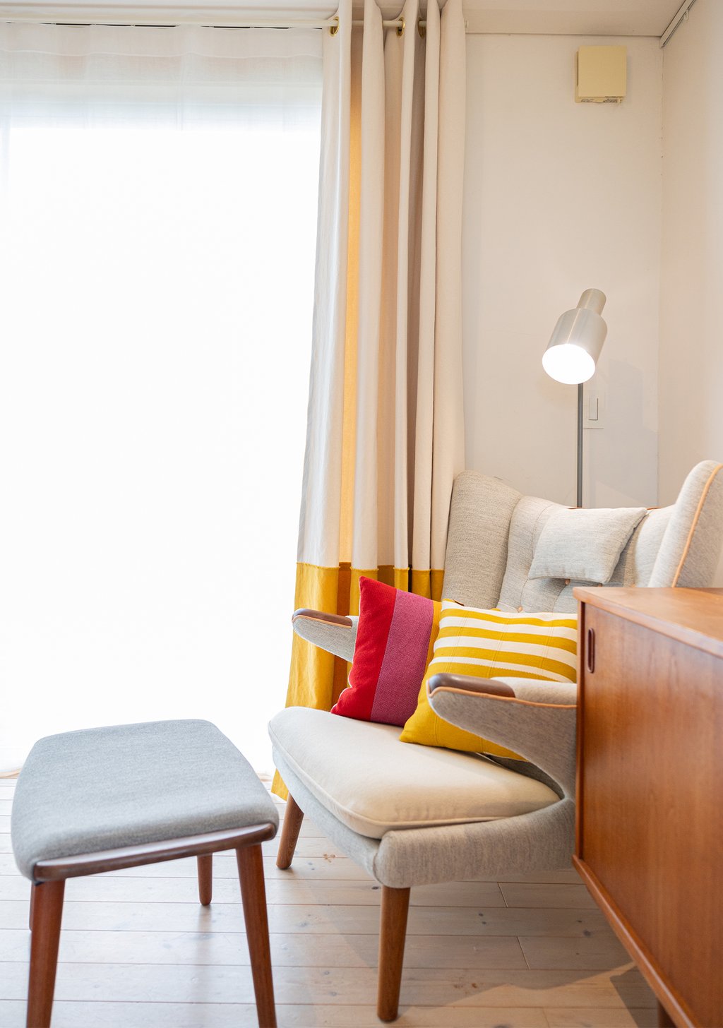 北欧ヴィンテージ家具と帆布カーテンの絶妙な組み合わせ