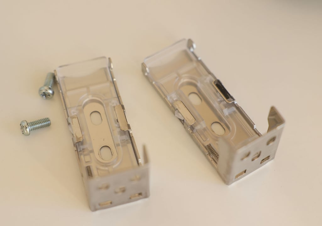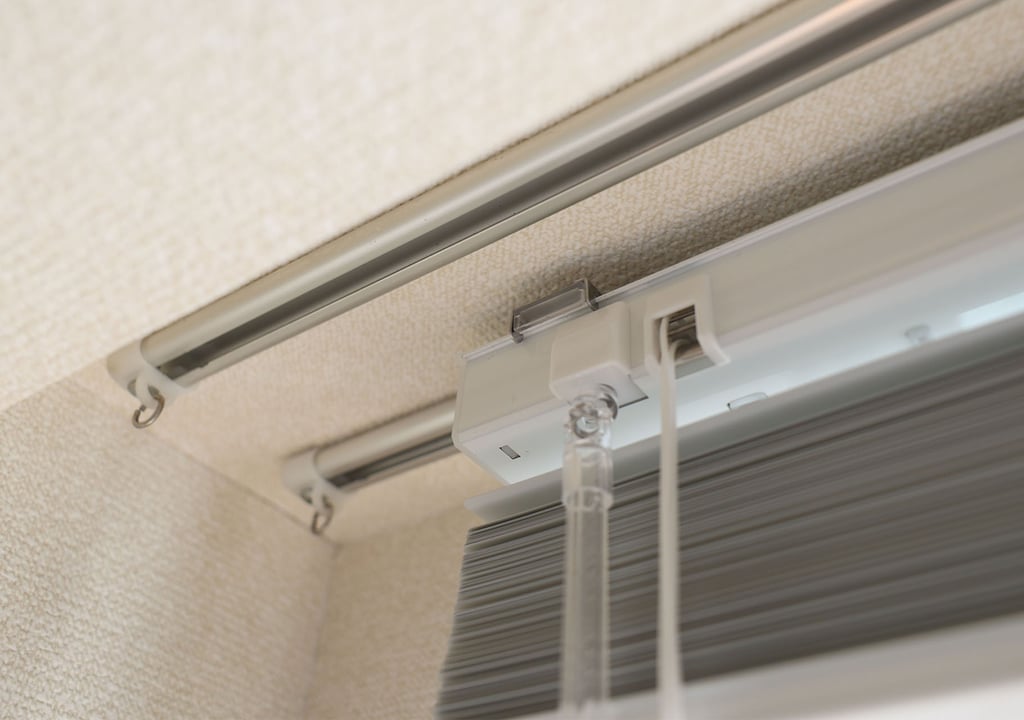 カーテンレールの端のキャップをドライバーでとり、ナットをカーテンレールに入れて、ブラケットを固定し、アルミブラインドを「カチカチッ」と取り付けるタイプの簡単な方法です。一般的なC型と呼ばれるカーテンレールに取付可能です。