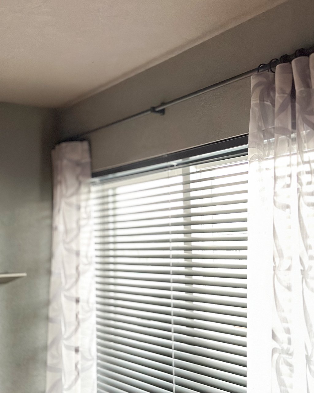レースが付いているカーテンレール(ダークグレー色)はシンプルさが特徴のシンプルレールです。細いレールとリングランナーで薄手生地を引っ掛けることで窓周りの雰囲気は抜群です。