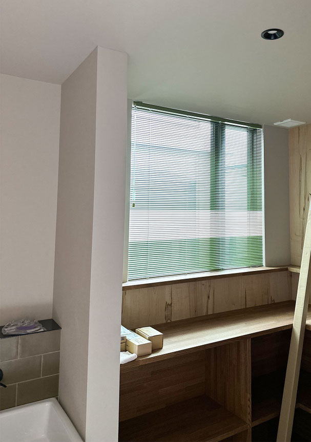 「部屋全体のトーンを揃えたい」「造作家具や床と色味を合わせたい」そんな時こそ、オリジナルカラーのブラインドが活きてきます。素材・質感・光の反射まで考えたご提案を行っています。