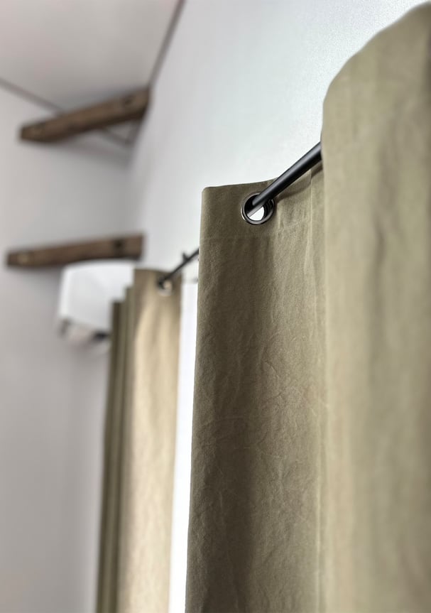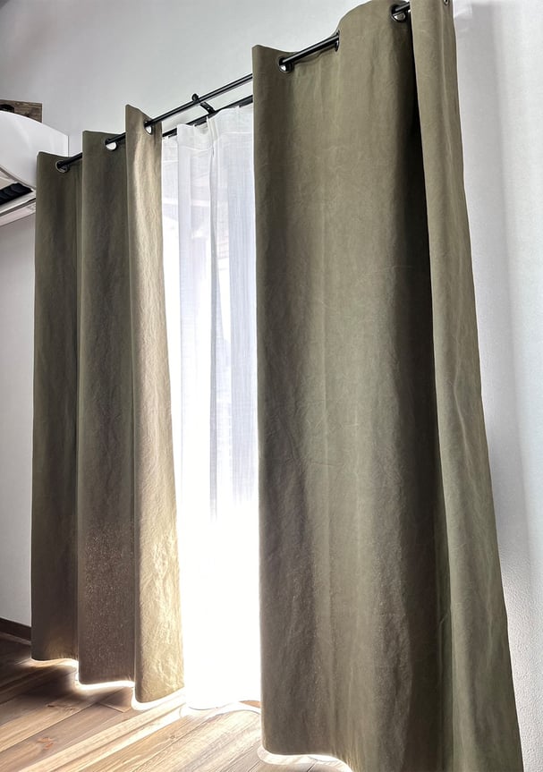 無骨さと温かみを併せ持つ帆布素材は、ナチュラルインテリアにも、木×鉄のインダストリアル空間にもよく合います。シンプルながら存在感のある窓辺に仕上がります。