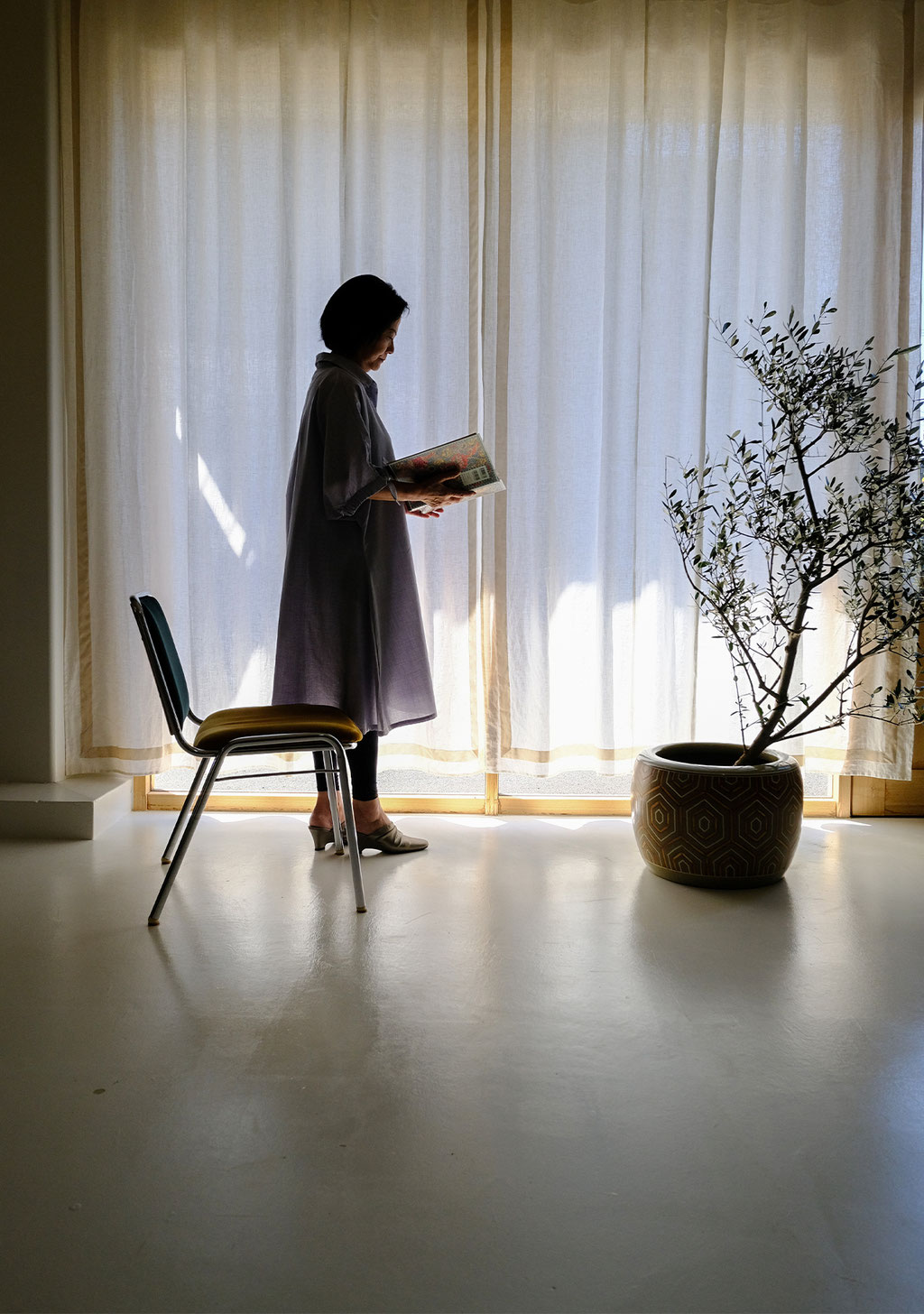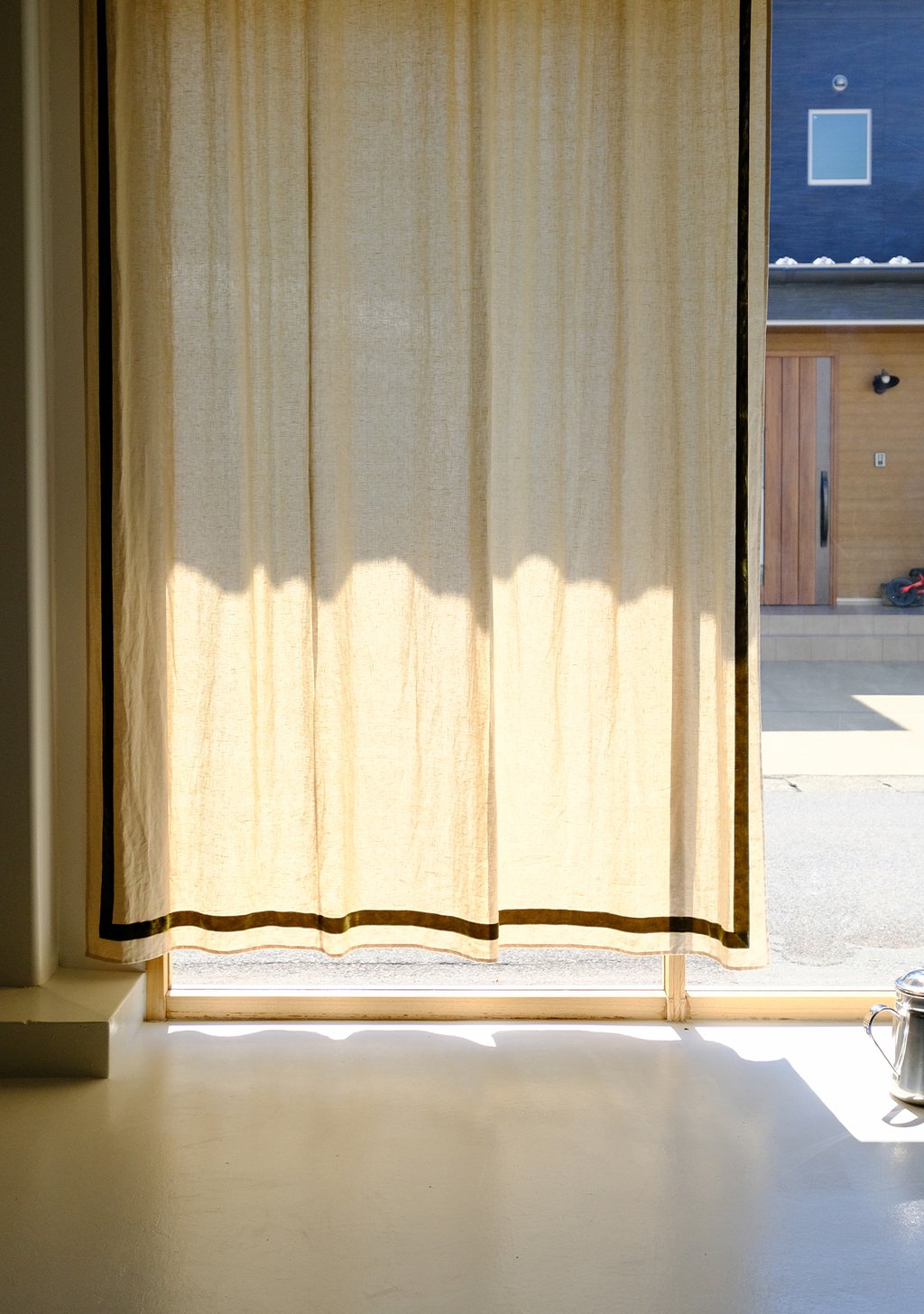 窓辺に上質な表情を纏わせる特別なスタイル。ベルベットの縁取りを施したリネンカーテンは、やわらかな透け感に上質なアクセントを添え、自然光を受けるたびに陰影を変えて窓辺をアートのように引き立てます。シンプルな空間に個性を加えたい方や、ホテルライクな雰囲気を求める方におすすめ。家具や小物と色をリンクさせれば、窓辺がより調和し、自分らしいインテリアを演出していただけます。