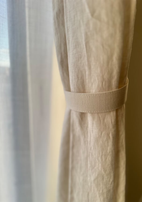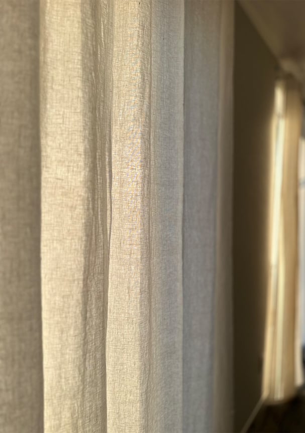 淡い光をやわらかく受けとめて、空間全体を穏やかな空気で満たしてくれるオフホワイトのリネンカーテン。自然素材ならではの透け感と風合いが、日々の暮らしに落ち着きとぬくもりをもたらします。