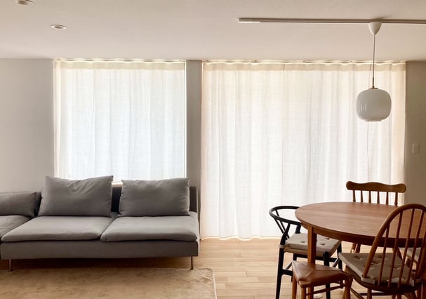 天井付けレール×フラットリネンカーテンで上質な空間を演出
