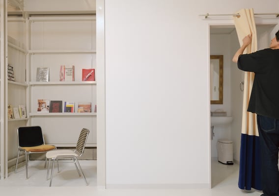 土間収納やパントリー、生活感の出やすいスペースをあえて“上質な布”で仕切るという選択もあります。