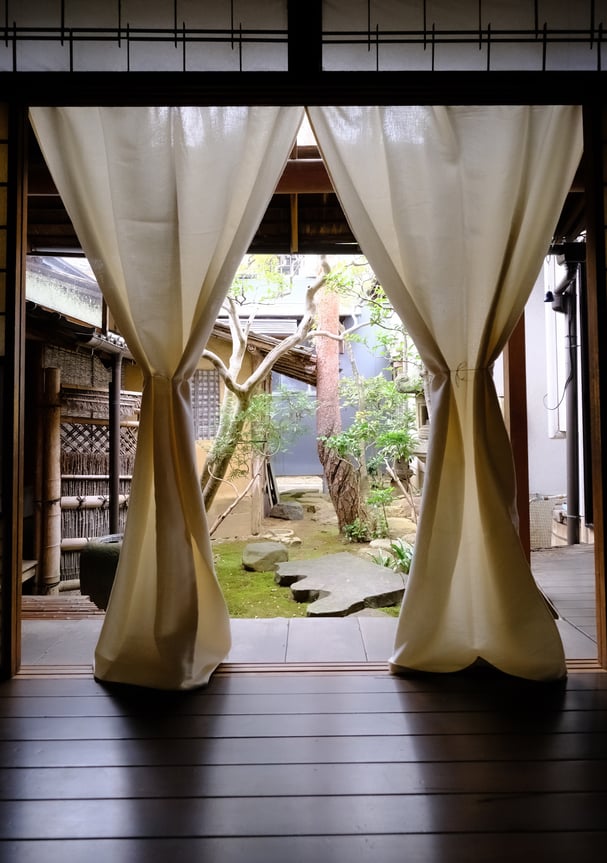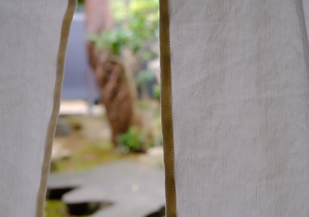 リネンの自然な落ち感が加わることで、和の趣とモダンの上品さを両立した表情に。町家・和室はもちろん、現代住宅の白壁や自然素材の空間にも自然に馴染みます。