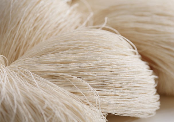 美濃和紙の特性を活かして作られた紙糸は、植物繊維を細かく裂き、空気を含むように繊細に撚り合わせることで、驚くほど軽やかで上質な糸へと姿を変えます。一本一本の繊維の間に生まれる細かな空気層が、通気性・速乾性・調湿性を高め、さらりとした清涼感を生み出します。光を受けると繊維がふわりと陰影をつくり、自然素材ならではの立体的な表情を楽しめるのも紙糸の魅力です。