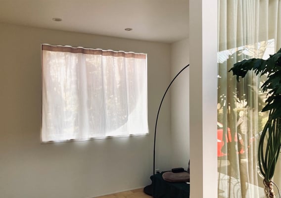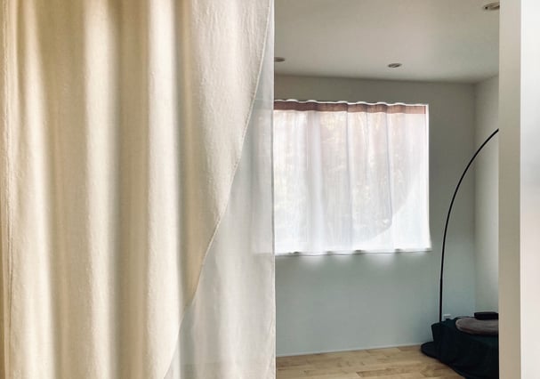 今回のご依頼は、テキスタイルデザイナー様からの特注オーダー。やり取りはすべてメールと図面・イラストの共有で進行しました。「素材の組み合わせ」「納まり」「縫製仕様」などをオンライン上で擦り合わせ、お部屋の建築設計段階から、布の表情をデザインとして取り入れるプランです。