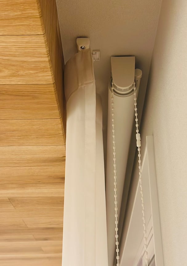 カーテンBOX内の様子、手前がレースカーテン、奥がロールスクリーン