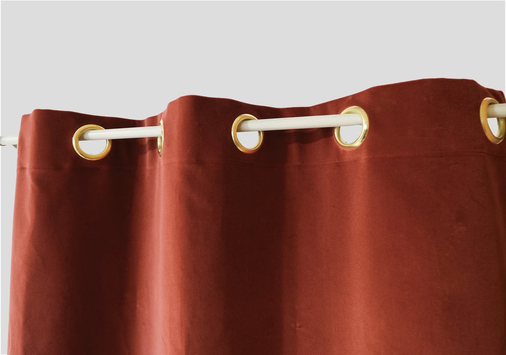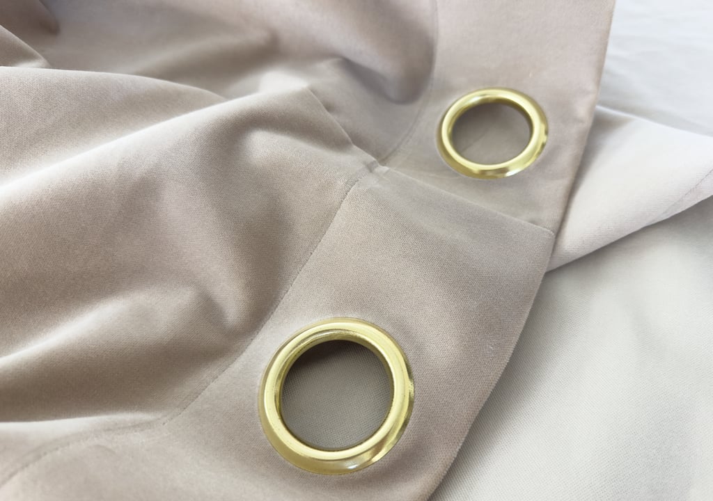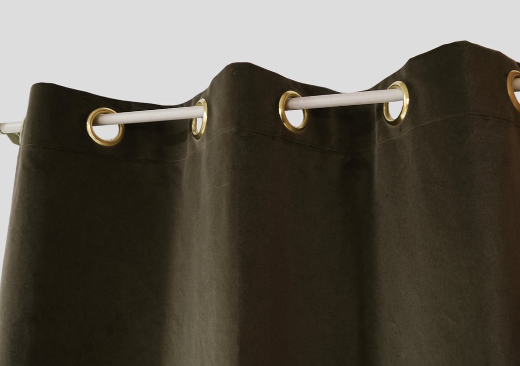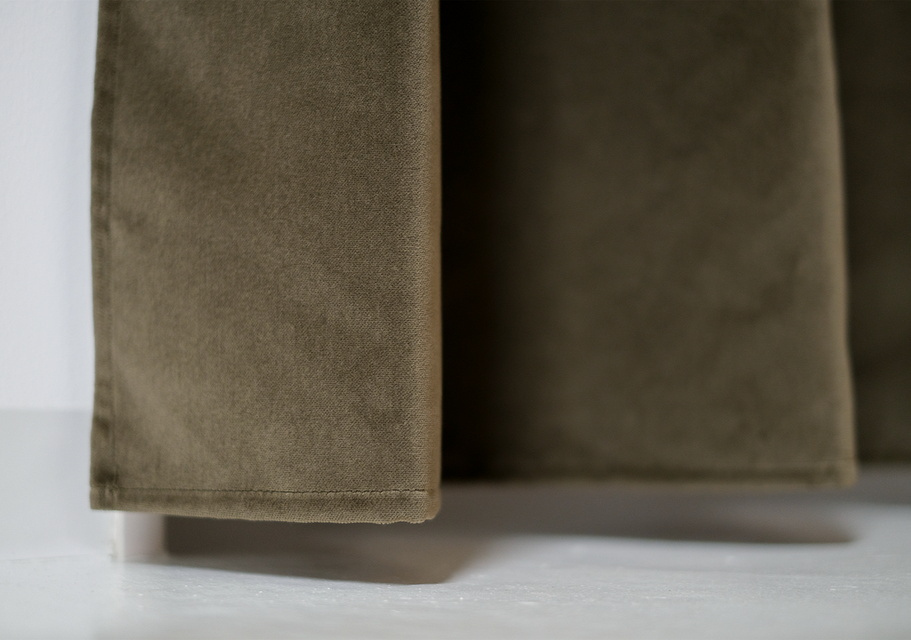 上品な光沢とやわらかな厚みで、空間を静かに仕切るコットンベルベットのハトメカーテン。
